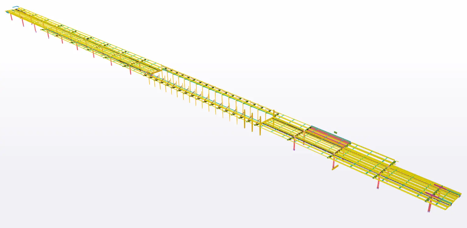 230 m dlouhá a 10,5 m široká ocelová konstrukce. To je zastřešení nástupiště v německém Hannoveru, na které naše kancelář zpracovala výrobní dokumentace včetně opláštění. Nová střecha bezprostředně navazuje na stávající budovu s eskalátory.