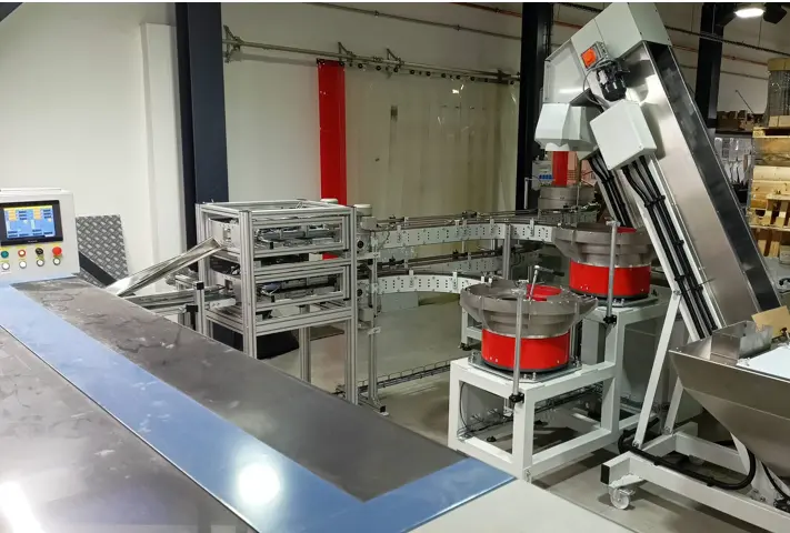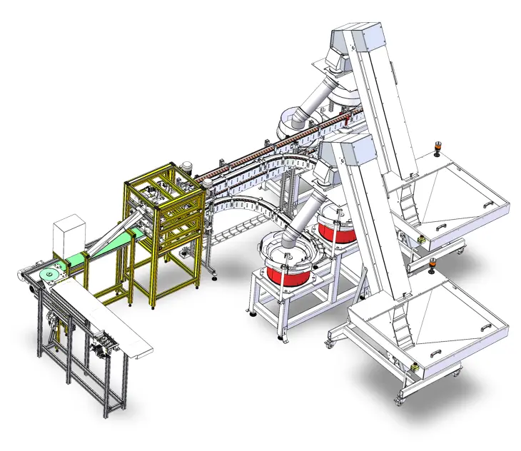 - Vstupní dopravníky – Přepravují díly k kompletačnímu zařízení