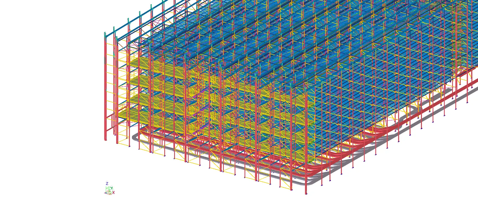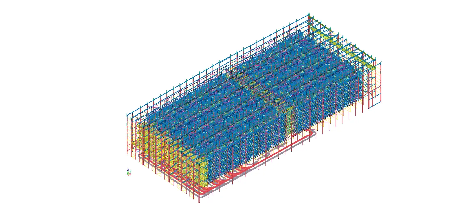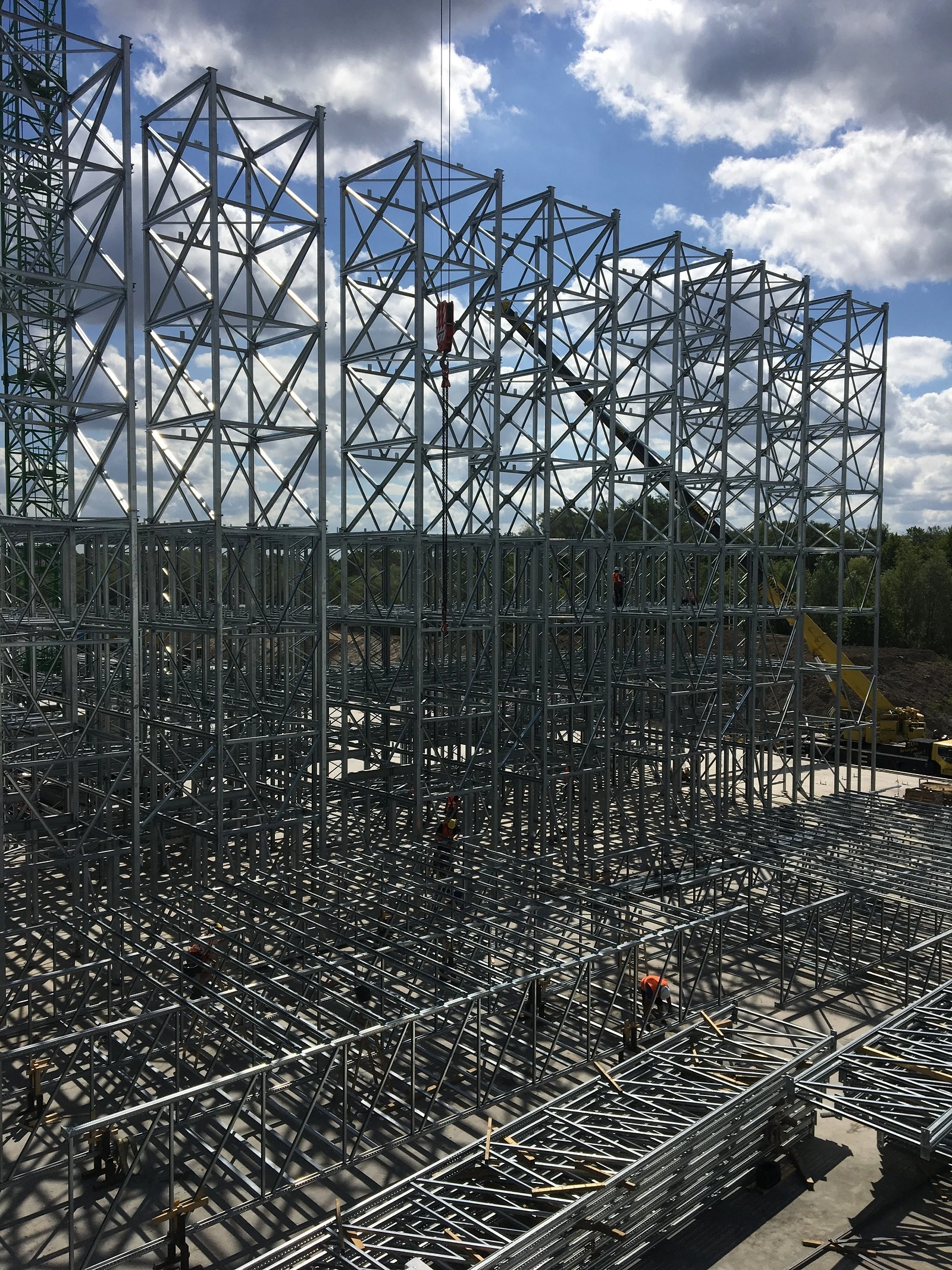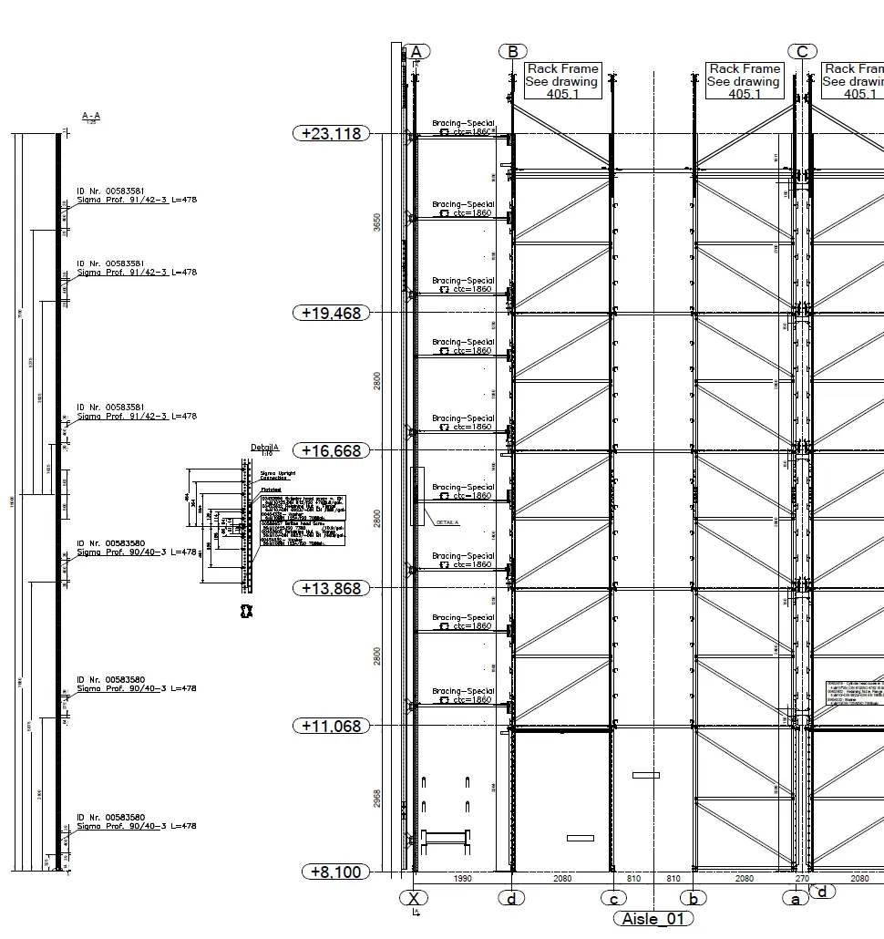 Konstrukce je typu „SILO“ – opláštěná regálová konstrukce o půdorysných rozměrech 35 x 79,5 m, výšce 16,6 m a celkové hmotnosti 579,3 t (bez opláštění)
