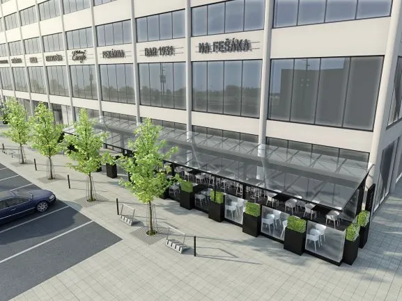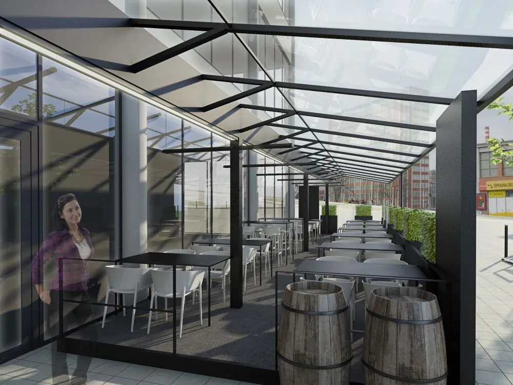 Projekt předzahrádek k ikonické budově Prioru ve Zlíně. Dokumentace zpracována v souladu s požadavky architekta. Přístřešky v kombinaci ocel-sklo. Součástí dokumentace byly rovněž designové květináče.