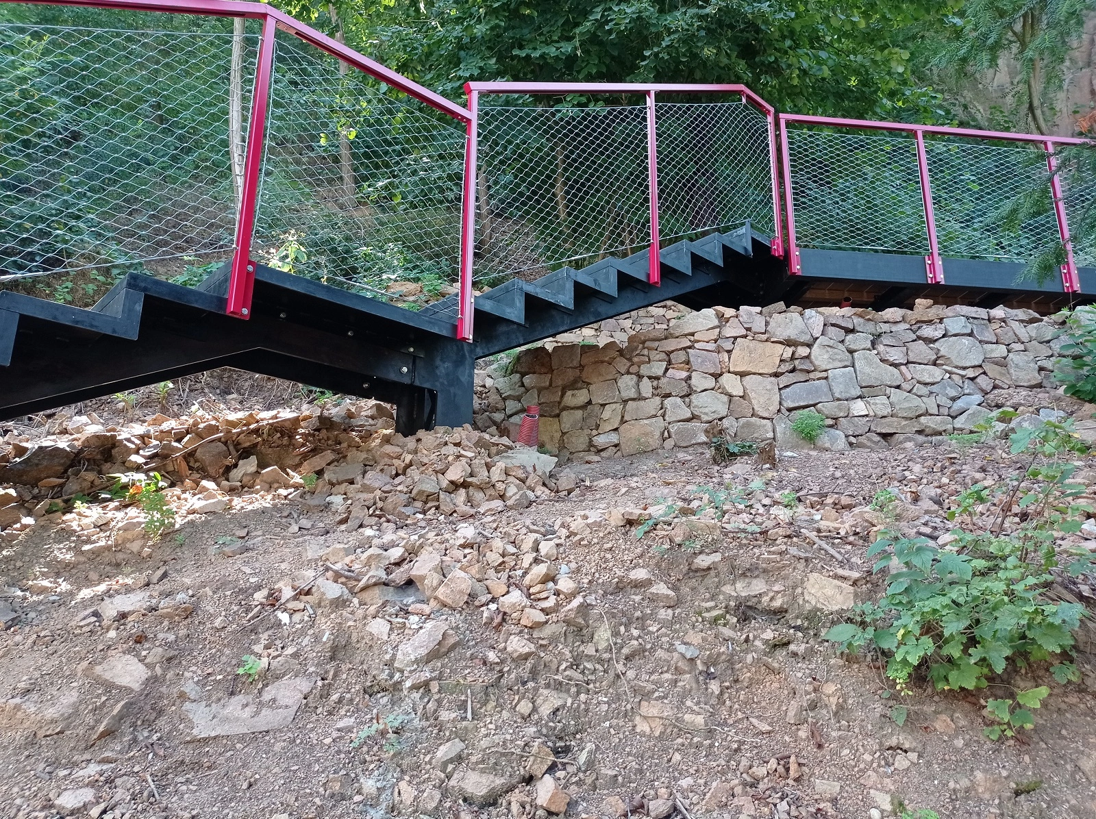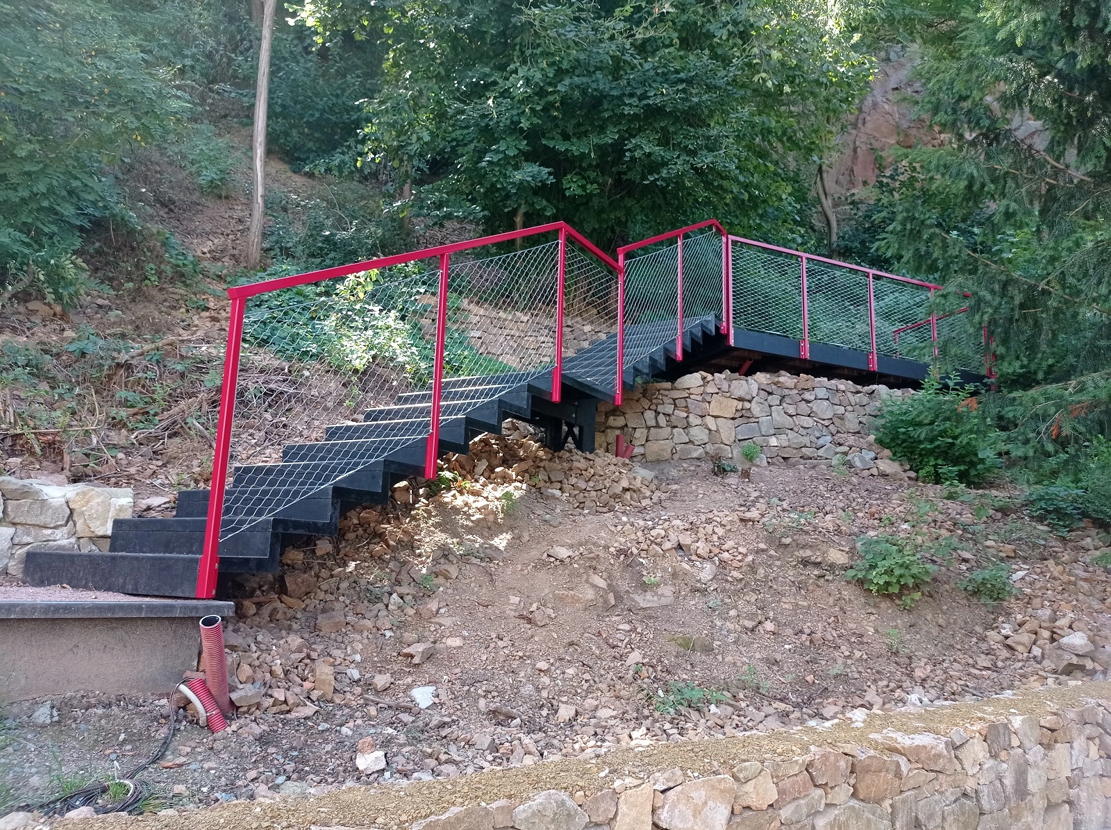 V rámci revitalizace areálu knihovny v Ostopovicích jsme byli nápomocni s konstrukčním řešením terénních schodišť, podest a zábradlí. V souladu s architektonickým návrhem byly navrženy bezpečné a funkční konstrukce.