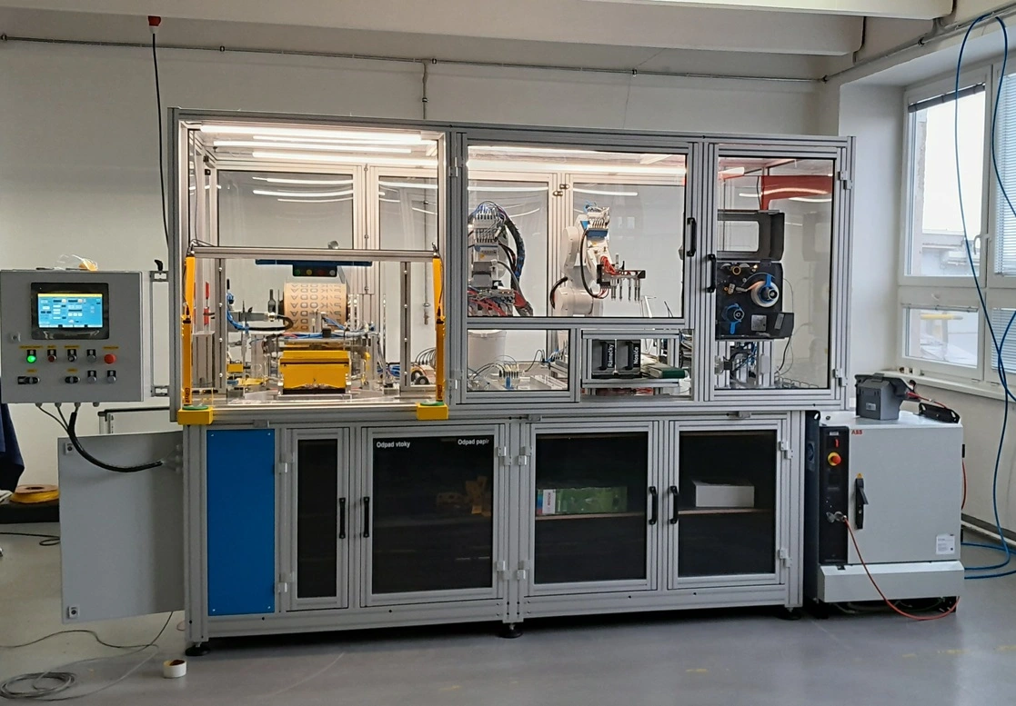 - Potisk a balení: Označení výrobku etiketou a balení pro použití ve výrobní lince