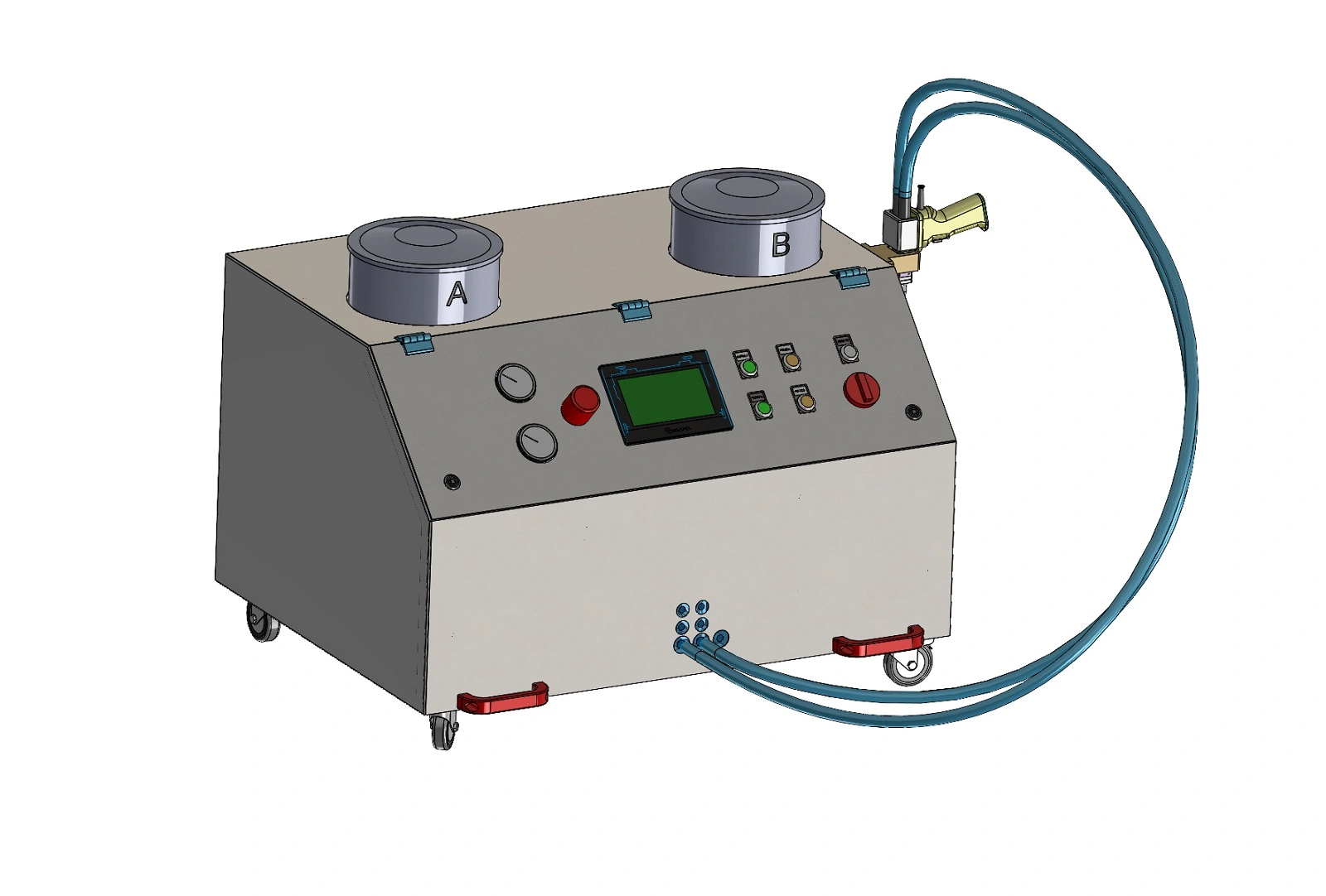 Zařízení pro přípravu lepidla od firmy Digram-Ing s.r.o. je určeno k automatickému míchání a dávkování dvoukomponentních lepidel. Skládá se ze dvou nádob pro jednotlivé složky, aplikační pistole se směšovacím mixérem, ovládacího panelu s PLC monitorem a dalších prvků zajišťujících bezpečný provoz. Zařízení pracuje plně automaticky.